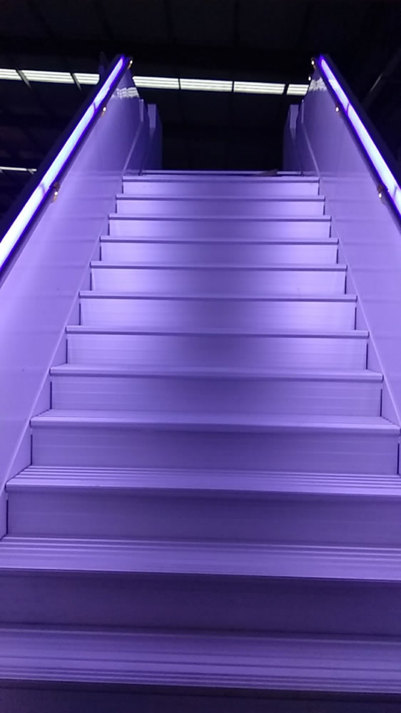 Postes de iluminação LED são usados para iluminação à noite em ambos os lados da escada k