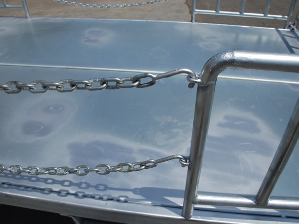 Com base nas solicitações do cliente, nosso departamento de design pesquisou sua demanda e arranjou o pessoal para projetar os desenhos. Após repetidas comunicações e modificações, o cliente finalmente confirmou os desenhos. De acordo com seu feedback, o espaço entre as grades da carreta de bagagem que ele estava usando era muito grande e ele temia que a carga caísse durante o transporte. Em resposta a essa situação, adicionamos duas correntes de aço ao vazio das grades. Durante o transporte, o operador pode puxar as correntes de aço para evitar que a carga caia. Ao carregar e descarregar as cargas, abaixe a corrente para facilitar o manuseio das cargas.